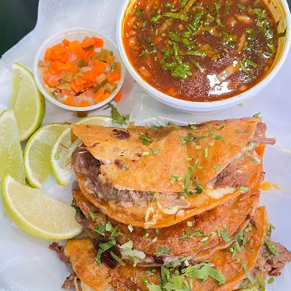 Their food is amazing! So far iv tried their quesa birria and their steak loaded fries. They are not stingy at all when loading your food with meat and cheese. both times I had a great experience! Definitely go visit them!